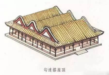 勾連搭屋頂就是兩個或兩個以上屋頂,相連成為一個屋頂,但看起來還是兩個或兩個以上屋頂,只是每個屋頂之間是連在一起的。這樣的屋頂形式,可以在建筑下部形象不變的情況下,使上部屋頂更富有變化,更為生動多姿。另外,也在不提高屋面整體高度的情況下,擴大室內空間。
