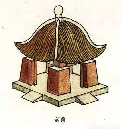 盔頂是一個比較形象的屋頂名稱,也就是像古代軍隊中戰(zhàn)士所戴的頭盔一樣形狀的屋頂形式。盔頂?shù)捻敽图沟纳厦娲蟛糠譃橥钩龅幕⌒?,下面一小部分反向的往外翹起,就像是頭盔的下沿。盔頂?shù)捻敳恐行挠幸粋€寶頂,就像是頭盔上插纓穗或帽翎的部分一樣??斣诂F(xiàn)存古建筑中并不是那么多,我國著名的岳陽樓就是使用的盔頂。