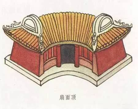 扇面頂和萬字頂一樣,是一種非常別致的屋頂形式,扇面頂顧名思義,就是扇面形狀的屋頂形式,其最大特點就是前后檐線呈弧形,弧線一般是前短后長,即建筑的后檐大于前檐。建筑的西山墻的墻線若向內延伸,可以交于一點,而這一點就是扇形的扇子柄端。扇面頂?shù)膬啥丝梢宰龀尚?、懸山,也可做成卷棚形式。扇面頂一般都用在形體較小的建筑中,會讓建筑看起來更為小巧可愛。