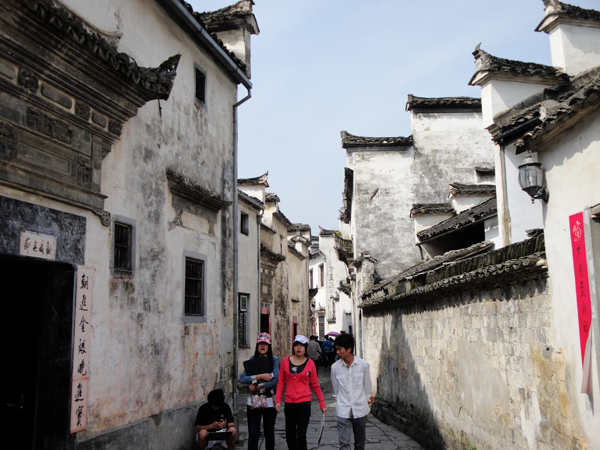 由于土地珍貴,屋宅內(nèi)外的空間都得到最大利用,因?yàn)榻^大部分民居出門見水,所以幾乎每家門外都有一個(gè)小小的埠頭。主婦每日洗衣、洗菜、淘米等都在這里,來往小船也可在這里停泊。和水路相比,街巷顯得十分狹小,有的僅容一人牽牛而行。高高的垣墻夾著曲折的街巷,營(yíng)造出曲徑通幽的別樣意境。