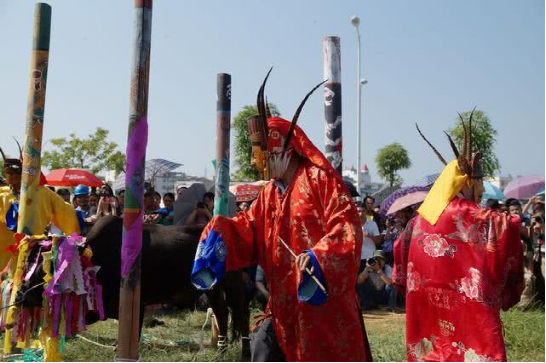 過節(jié)前一天,要“椎殺”一頭公牛,用牛頭、牛尾、牛腳、牛內(nèi)臟祭龍。祭時有法師喃經(jīng)、跳神。牛肉則分給各家各戶或拿到市上出賣,收入作為節(jié)日費用。祭龍后二三天,各戶自拜祖先、三界仙、灶王、地主娘娘等,也是求神靈保佑五谷豐登。又用糯飯、粉蒸肉喂牛,以酬謝它耕作的辛勞,并給牛放假一天,讓它好好休息。嫁出去的女兒則帶上子女和禮品回娘家過節(jié),親戚朋友也常常登門賀節(jié),青年男女則盛裝聚會唱歌,選擇知音。現(xiàn)在過此節(jié),宗教迷信活動多已廢棄。增加了文體競賽或者開展有關(guān)生產(chǎn)生活方面的科普活動等。