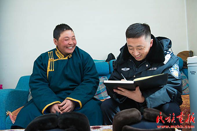 無論在哪個邊境派出所,敖日奇朗都跟牧民們以心交心,以誠相待,成為好朋友。如今,敖日奇朗在諾門罕布日德邊防派出所工作五年了,也常有新寶力格邊防派出所轄區(qū)牧民打來電話,咨詢法律問題,他每回都耐心地解答。“牧民朋友們的純真質(zhì)樸平復(fù)了我剛到這里時躁動的心。邊境派出所是邊民生命財產(chǎn)安全的保障,隨時為轄區(qū)群眾牽線搭橋辦事。邊防警察與牧民的良好互動,會在關(guān)鍵時刻發(fā)揮重要作用,這恰恰也是我們開展走訪工作的意義所在?!卑饺掌胬矢锌?。